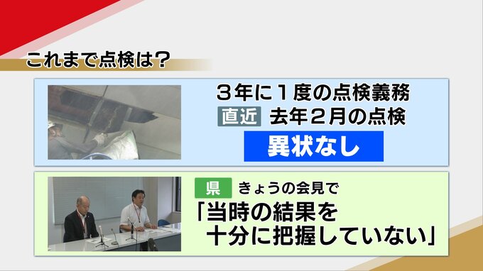 「きょうの会見で、県は当時の点検結果について十分に把握していないと明言しませんでした。