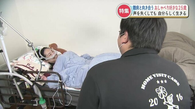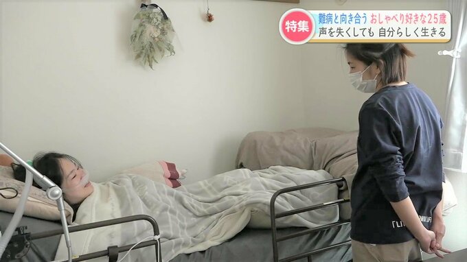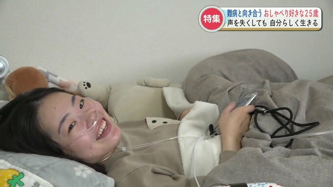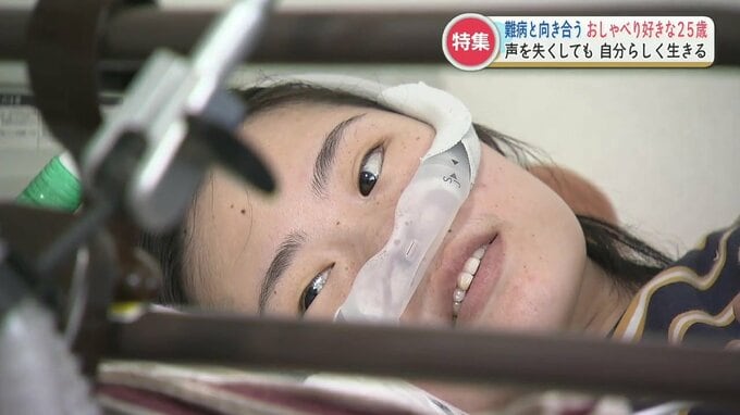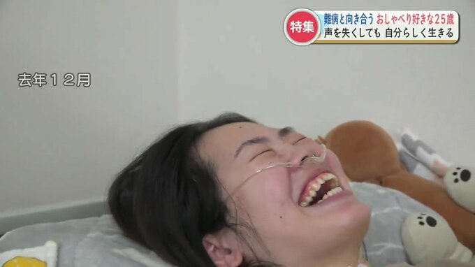 熊本市の山本栞奈(かんな)さん、25歳。全身の筋肉が衰えていく進行性の難病を患っています。栞奈さんの意志で病名は公表していません。