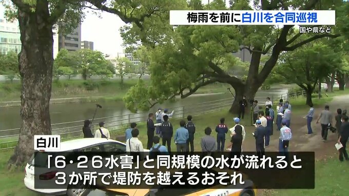 降水量が増える梅雨を前に熊本市の白川で、豪雨時に対策が必要な場所を国や県などが合同で巡視しました。