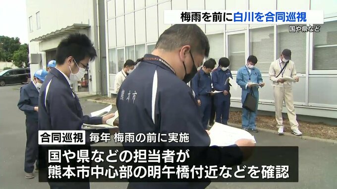 この合同巡視は、毎年梅雨の前に行われているもので、国や県などの担当者が熊本市中心部の明午橋(めいごばし)付近などを確認しました。