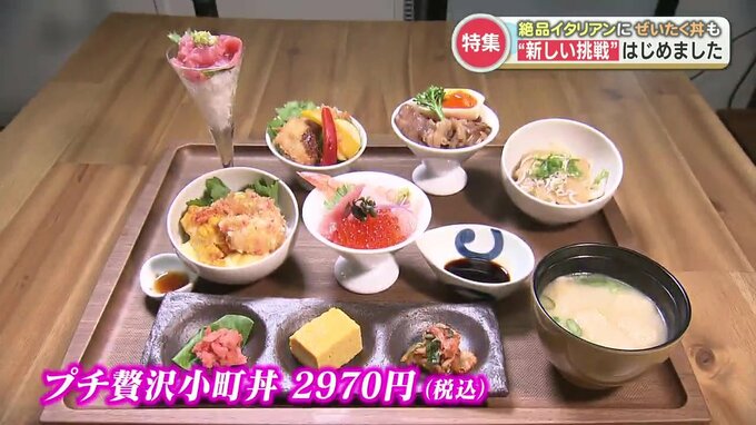 少し落ち着いた場所で営業したいと見つけたこの場所で、土・日・祝日限定で飲食店も始めました。中でも、弁当作りの経験を生かしたメニューが、6種類の「どん」を楽しめる「プチ贅沢小町丼」です。