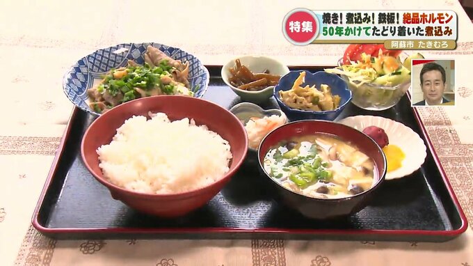 そんな「たきむろ」の名物は「ホルモン定食」。しっかりと味が染みた、やわらかい豚ホルモンの味噌煮込みです。