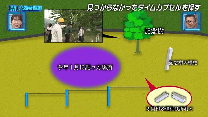 明日香先生「みんなで埋めた写真はあるのですけど、目印として立ててあった標柱が折れてなくなってしまい…」