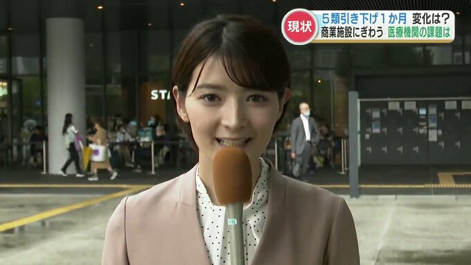 新型コロナウイルスが感染法上の位置づけが5類に引き下げられて1か月、商業施設や医療機関の現状を取材しました。