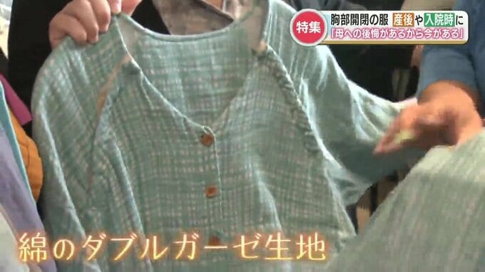 くみかさん「ボタンとテープで簡単に開閉ができます。(胸の部分は)ガッと開きますので、乳がんの方が検査や診察のときにしっかりと確認することができますし、授乳中のママが簡単に授乳することもできます」