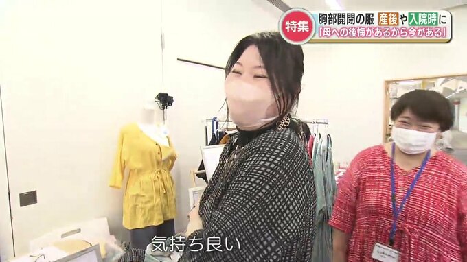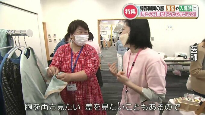 5年前に手術した女性「(生地が)気持ち良い、包まれてる。(乳がんで)入院し、全摘出しました。あの時に出合っていれば。病院の中にパンフレットがあればすごく救われますよね」