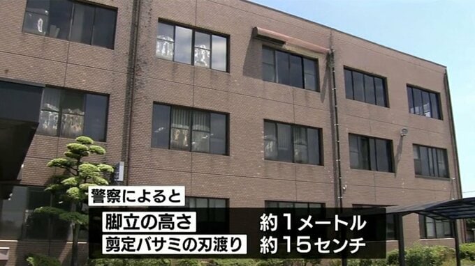 警察によりますと、脚立の高さはおよそ1メートルで、剪定バサミの刃渡りは15センチほどだったということです。