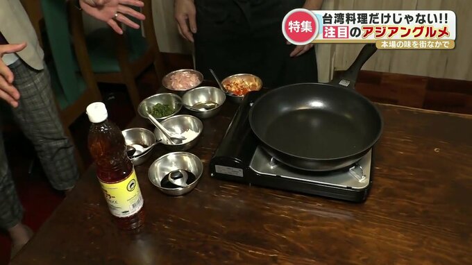 テーブルに用意されていたのはフライパンと数々の調味料や食材。