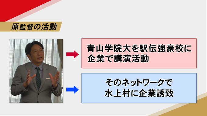 また、原監督は青山学院を駅伝の強豪校に導いた実績があり、いろんな企業で講演活動をしています。このネットワークを使って水上村に企業研修を誘致したいとしています。