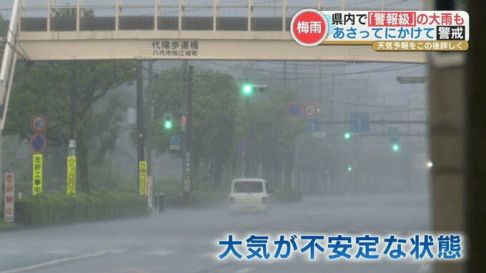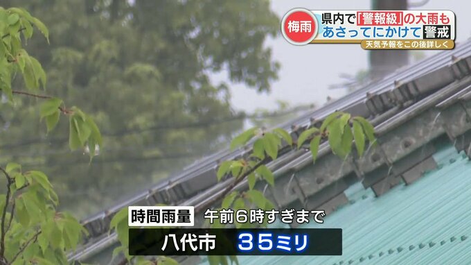 八代市では午前6時すぎまでの1時間に35ミリの激しい雨を観測しました。