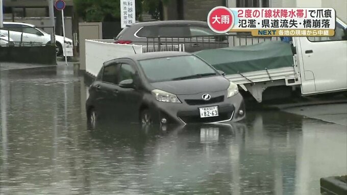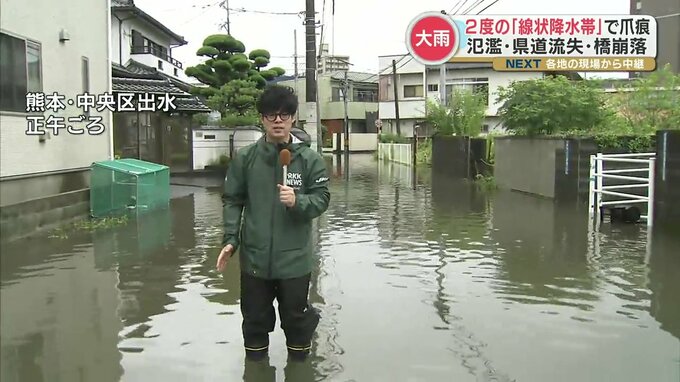 記者「熊本市出水の住宅街です。雨のピークから2時間程経過していますが、こちらの道路は未だ30センチほど冠水したままです」