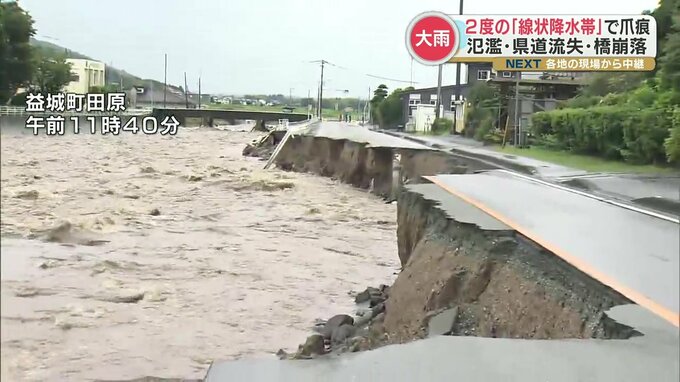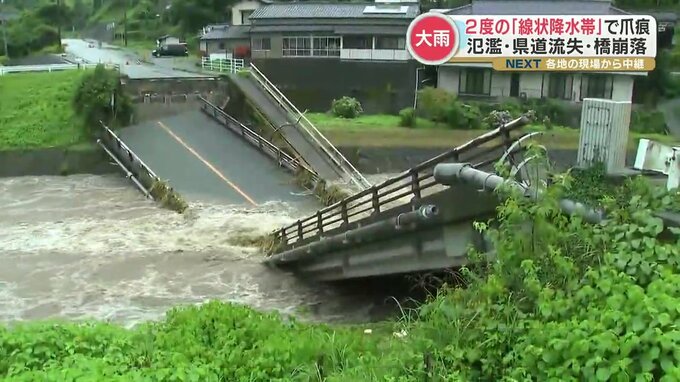 住民が撮影した映像には、すでに折れかかっている橋を車が渡る様子が映っていました。けが人の情報は入っていないということですが、復旧の目処は立っていません。