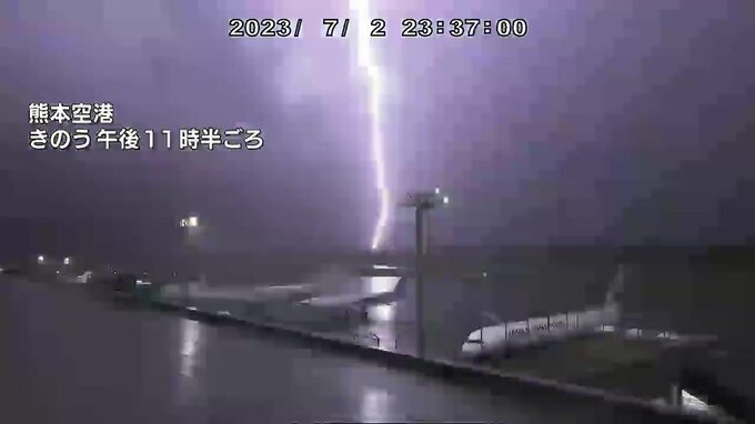 昨夜から激しい雷雨となった県内、熊本空港の情報カメラには稲光が映っています。