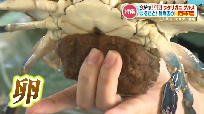 ちなみに今の時期、メスのお腹には卵がたっぷり!そしてオスは身がぎっしりと詰まっているので、どちらを選ぶかはプロでも…。