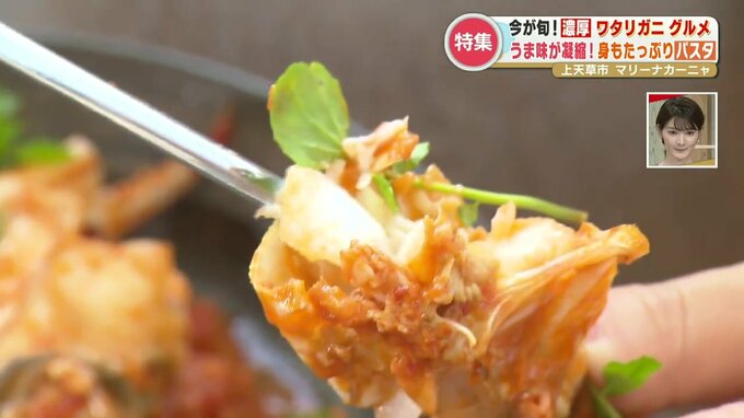 小田さん「このパスタでしか使わないトマトソースで、少し辛みも入れつつ、よりカニのうまみをひきたたせる味付けに仕上げてます」