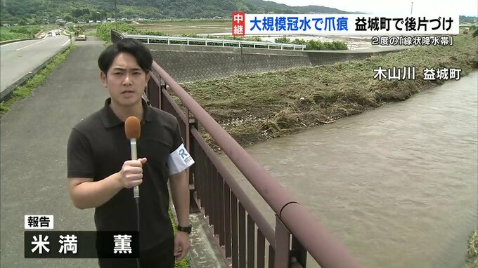 午前7時には町を流れる木山川が氾濫し、周辺の田畑が広い範囲で冠水しました。