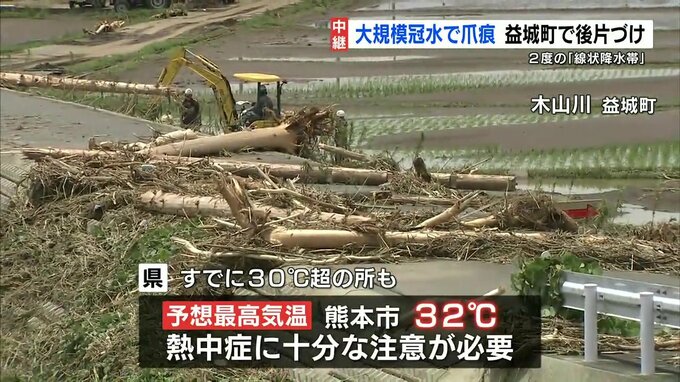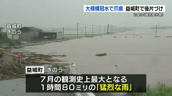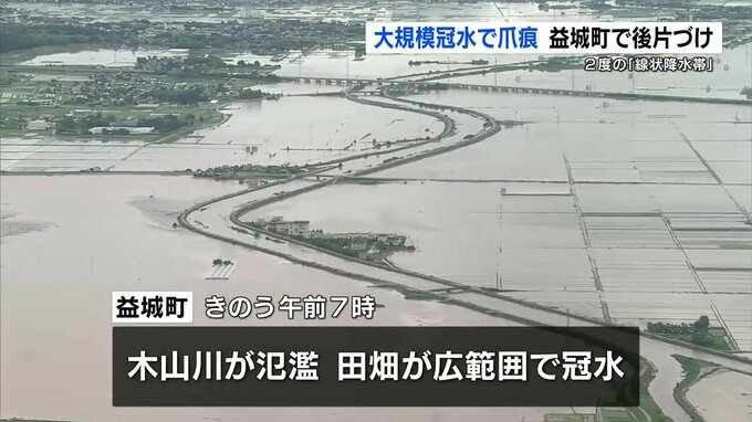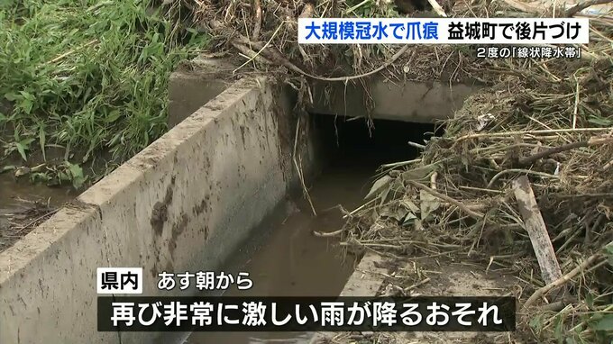 大雨から一夜明け冠水した地域では、農家が後片付けに追われていました。