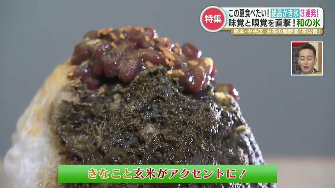 それが、『ほうじ茶かき氷』。ほうじ茶蜜の芳醇な香りと苦み、小豆に加えて「きなこ」と玄米茶の香ばしさがアクセントに。