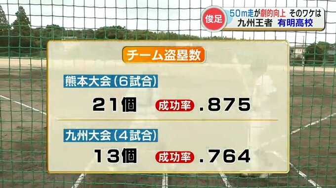 盗塁の数は、春の熊本大会、6試合で21個。成功率は8割超え、九州大会でも4試合で13個と成功率は7割を超え、相手にとって脅威となっています。
