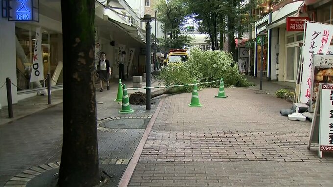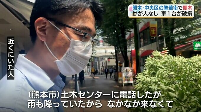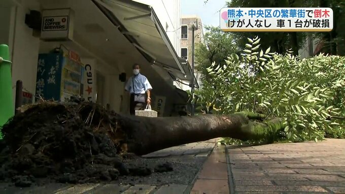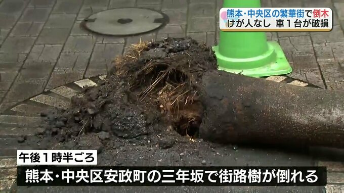 熊本市中央区の繁華街で街路樹が倒れ、車1台が破損しました。