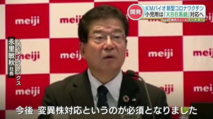 そのため、KMバイオロジクスの永里敏秋社長はきょうの会見で、12歳以下の小児用については現在、流行しているXBB系統に対応したワクチンとすることを明らかにしました。