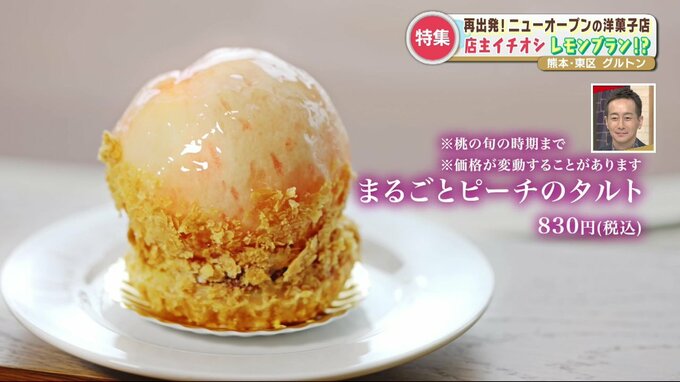 タルト生地は2日間かけて丁寧に作られます。そのタルトの上に桃を丸ごと!