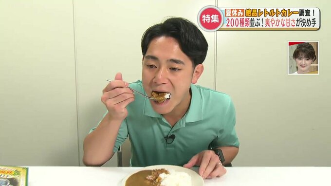 米満薫アナウンサー「梨の甘さが際立ってます。リンゴを使ったカレーとは違った梨の爽やかな甘さがしっかり合わさっている。お子さんは食べやすいんじゃないかな」