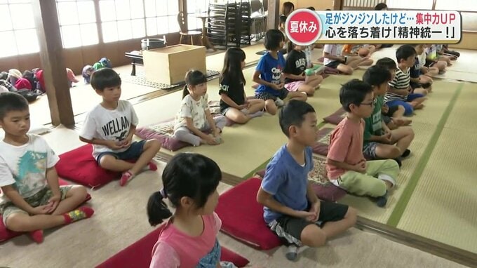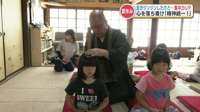 広間に入った子どもたちは、住職から座禅の組み方を教わると背筋を伸ばしておよそ10分間心を落ち着けました。