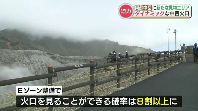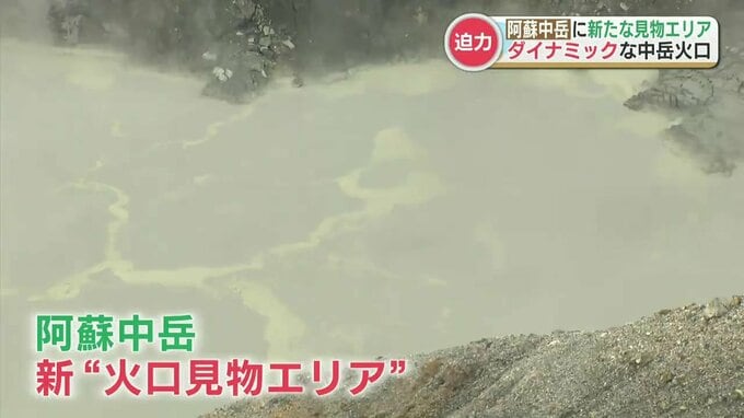 熊本県内観光の目玉、阿蘇中岳に新たな火口見物エリアがオープンします。今までとは違った阿蘇の魅力を伝える新たなエリアが報道陣に公開されました。