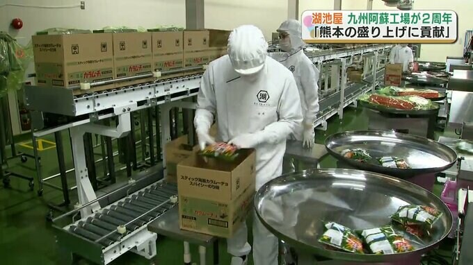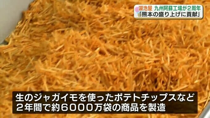 ポテトチップスなどのスナック菓子で知られる湖池屋の益城町にある工場がオープンから2周年を迎えました。