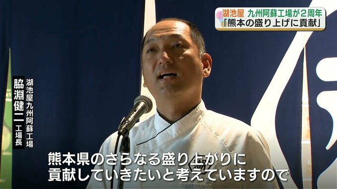 湖池屋九州阿蘇工場 脇淵健二工場長「湖池屋としてもこの九州阿蘇工場を拠点に、熊本県のさらなる盛り上がりに貢献していきたいと考えていますので引き続きよろしくお願い致します」
