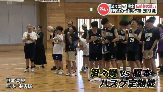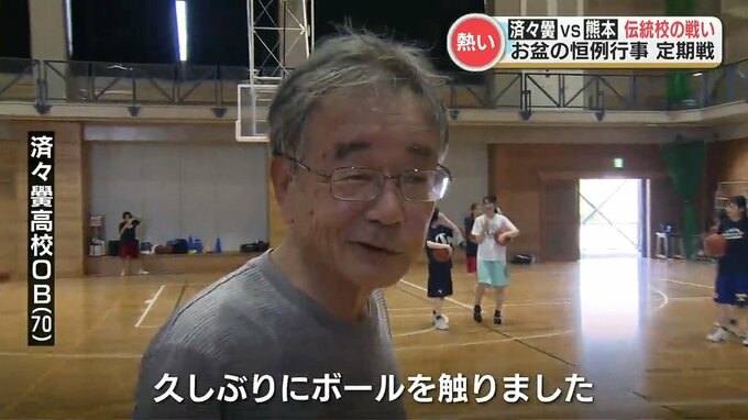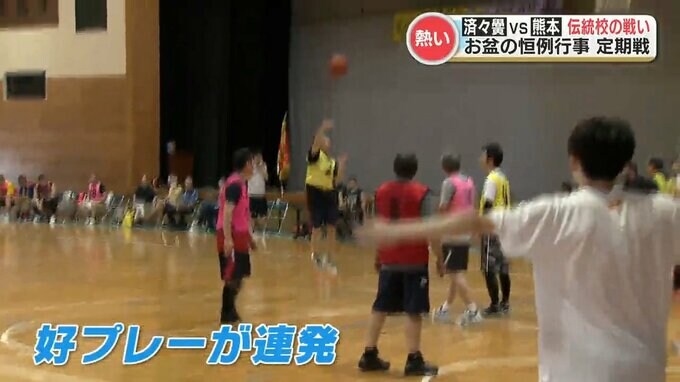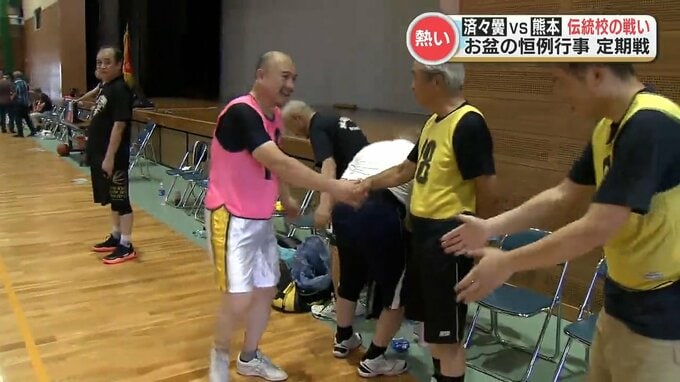 済々黌高校と熊本高校の卒業生たちによるバスケットボールの定期戦が熊本市で行われました。