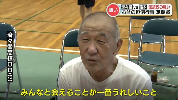 熊本高校 試合出場した最年長OB(73)「みんなと会えることが一番楽しいこと。ぜひ、今後も続けていかなければとおもいます」