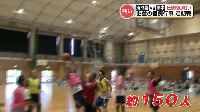 お盆の恒例行事になっているこの試合に集まったのは熊本県の内外から約150人。