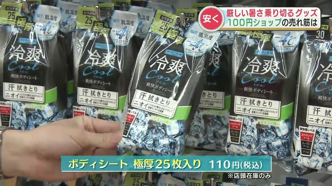 ダイソー フレスポくまもく店 河野圭一郎 店長「市場価格で安くても300円ほどしますが、汗拭きシートはすべて100円で取り扱いしています」