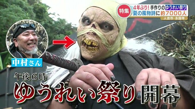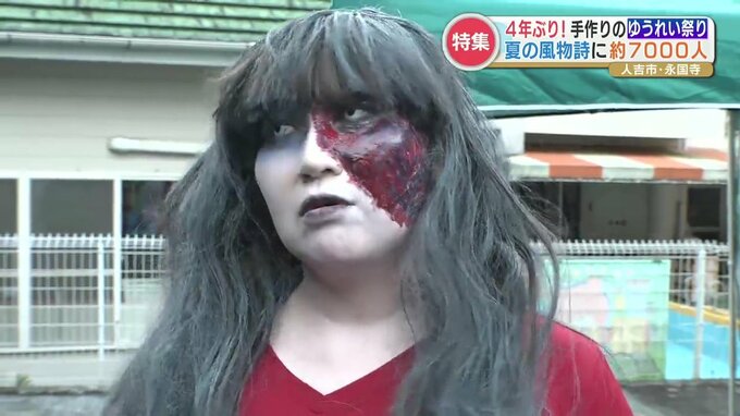 中村さん「3年間夏が来ていないと言えるくらい、この祭りをめっちゃ楽しみにしていた。すべては子どもたちが喜んでくれればという思い。私がまだ子どもの頃、ゆうれい祭りに来ていたが怖かった。いまだに思い出となって残っている」