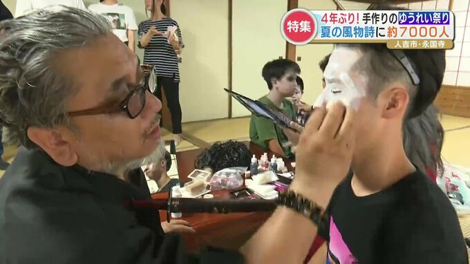 開場の1時間半前、急ピッチでゆうれい屋敷の設営を進める一方で、ゆうれいのメイクに余念がないのは、ボランティアで参加する地域住民達です。