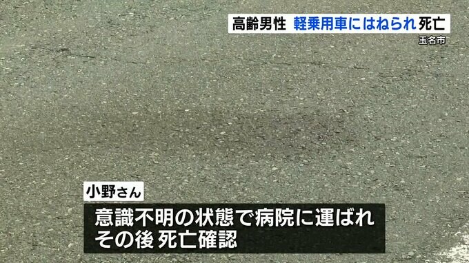 玉名市で、80代の男性が軽乗用車にはねられ、その後死亡しました。