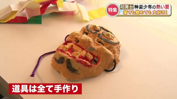 神楽で使う道具やお面は、栄樹くんが作りました。