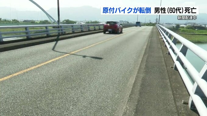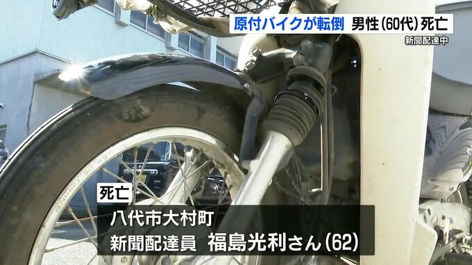 八代市で新聞配達中の原付バイクが転倒し、運転していた男性が死亡しました。