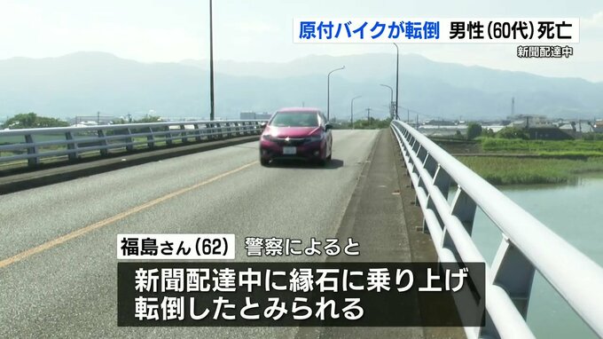 警察によりますと福島さんは新聞配達の業務中に県道の縁石に乗り上げ転倒したとみられるということです。警察が事故の原因を調べています。