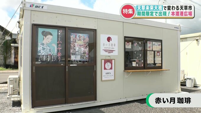 これまで、県内外のデパートの催事や、 東京で期間限定のコーヒーショップを 出店していましたが、本渡港広場ではゆっくりくつろいでもらいたいと 初めてのカフェをオープン!