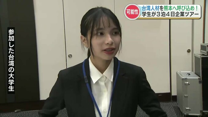 参加したのは台湾の大学で日本語を学ぶ学生たち。県の商工会議所が主催するこのツアーは、TSMCの進出を受け、台湾の3つの大学と県内企業が参加するインターンシップ事業です。