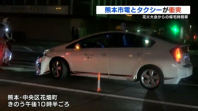 熊本市で4年ぶりに開かれた花火大会、その帰宅時間帯に熊本市電とタクシーが衝突しました。