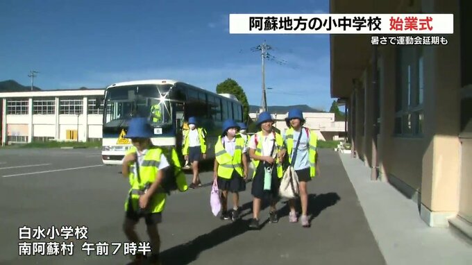 『長い夏休みの終わり』2学期始業式 熊本・南阿蘇村 2023年8月28日(月) 12:03 国内 長い夏休みが終わり、阿蘇地方の小中学校で2学期が始まりました。南阿蘇村の白水(はくすい)小学校では、児童たちが元気に登校し、全校児童169人が集まって始業式が行われました。白水小学校 坂田菊美 校長「夏…