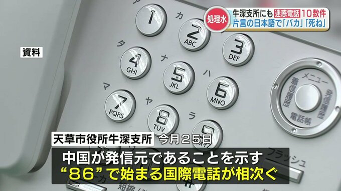 天草市役所牛深支所には福島第一原発の処理水が放出された翌日、中国が発信元であることを示す「86」で始まる国際電話が相次ぎました。