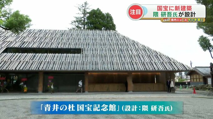 完成したのは、国立競技場や高輪ゲートウェイ駅を設計した日本を代表する建築家・隈 研吾(くま けんご)さんが設計を手がけた、「青井の杜(あおいもり)国宝記念館」です。