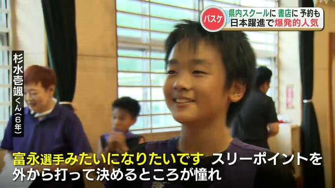 杉水壱颯くん(6年)「富永選手みたいになりたいです。スリーポイントを外から打って決めるところが憧れ」