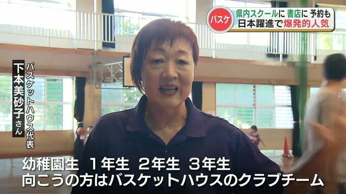 バスケットハウス代表 下本美砂子さん「幼稚園生、1年生、2年生、3年生、向こうの方はバスケットハウスのクラブチーム。総勢100人弱くらいですね」