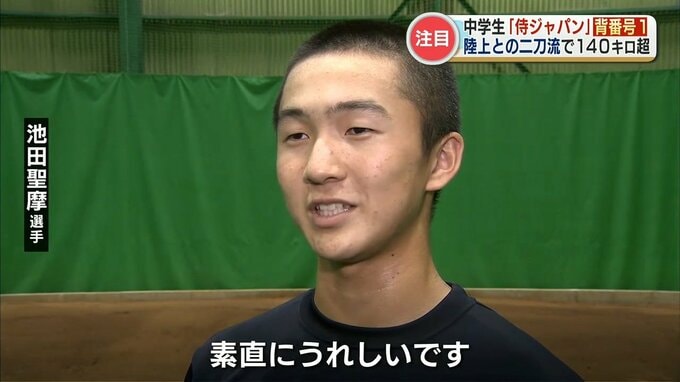 池田選手は15歳以下の「侍ジャパン」に選出され8月、アジア選手権に出場。